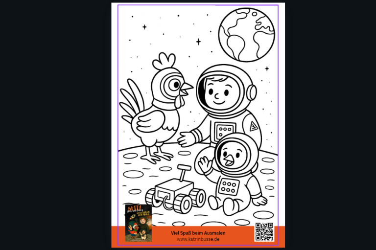 Hier könnt ihr drei liebevoll gestaltete Ausmalbilder aus dem Buch „Betty, Chico und Chicky erforschen den Mond“ kostenlos herunterladen, ausdrucken und ausmalen.
