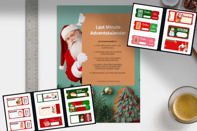 Dieses PDF enthält 24 kleine Gutscheine, die sich perfekt als spontaner Adventskalender oder als liebevolle Beigabe zu deinem Geschenk eignen. Die Motive geben bereits verschiedene Gutscheinideen vor und können individuell ergänzt werden. Einfach herunterladen, ausdrucken, ausschneiden und in eine kleine Geschenkbox oder einen Umschlag legen. Ideal für alle, die schnell etwas Persönliches verschenken möchten.